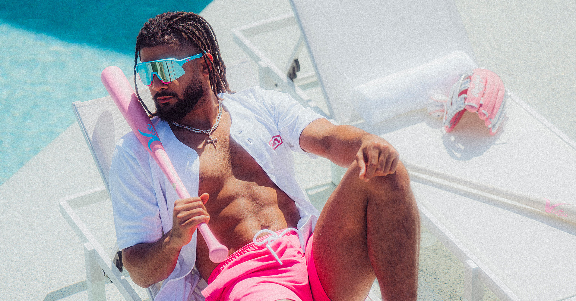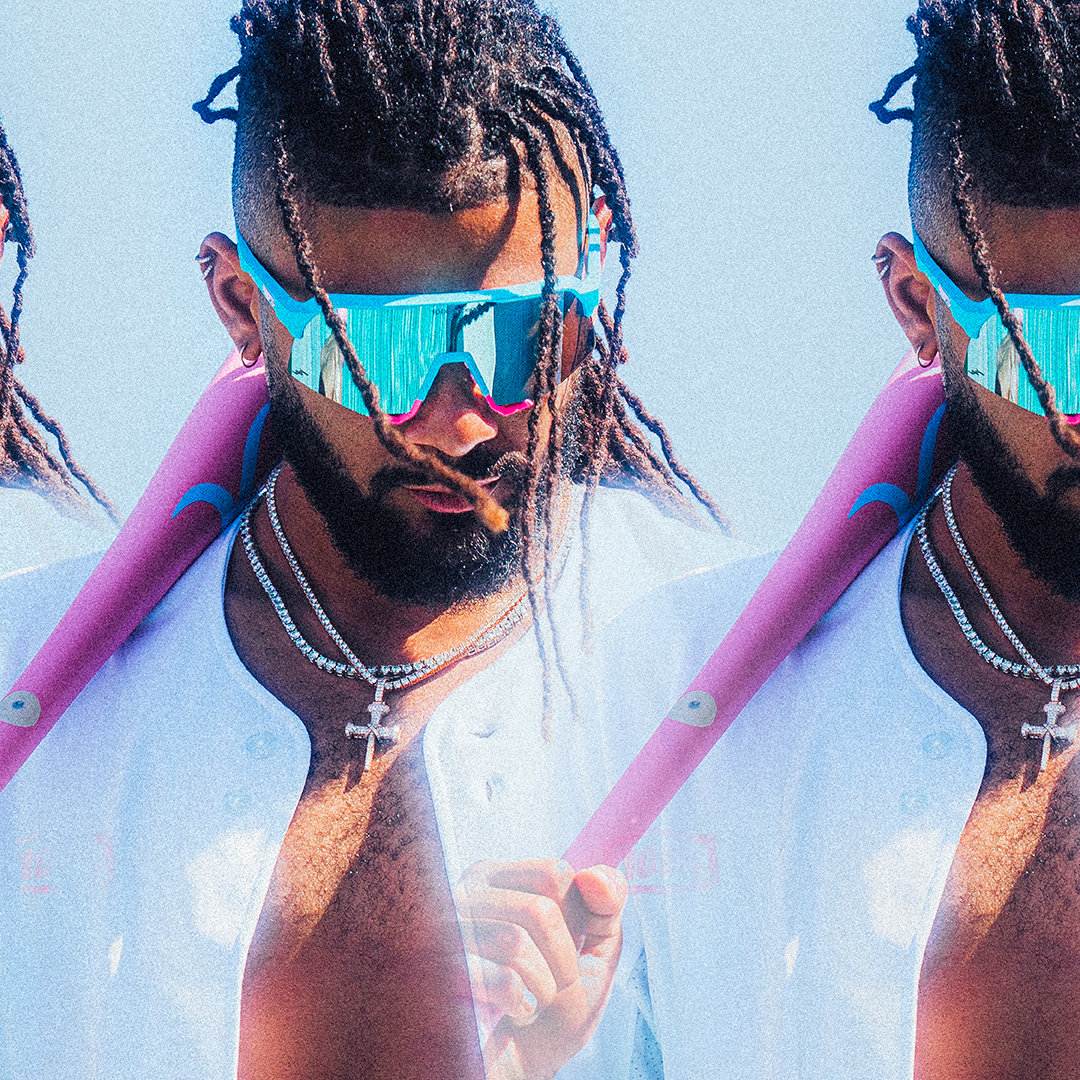 Adorned with his signature pitaya pink, accentuated with aqua blue, these sunglasses command attention on and off the field.